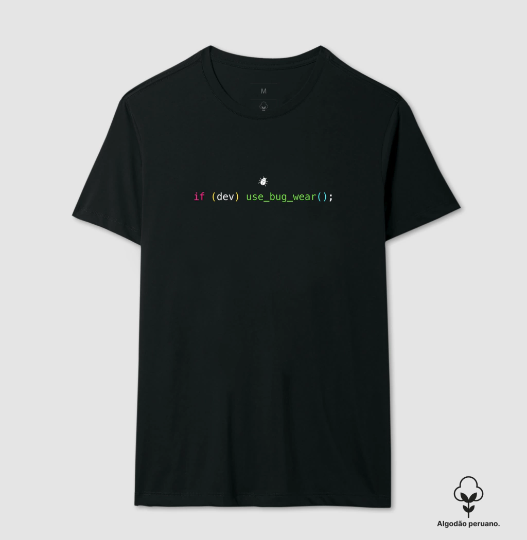 Para os programadores que apreciam a qualidade tanto quanto um sistema bem arquitetado, esta camiseta de algodão peruano é a escolha ideal. Sinta a diferença de um tecido superior enquanto exibe sua inteligência e seu papel crucial no mundo digital, impulsionado pela certeza de que `if (dev.use(BugWear))` o resultado é sempre premium.